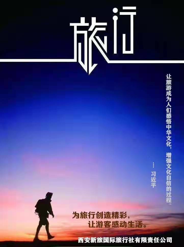 我們堅持遵循:以質(zhì)量求生存、以創(chuàng)新求發(fā)展、以市場為導向、以服務為宗旨的經(jīng)營理念,為游客提供全方位、多元化、高層次的服務。 感謝各位對西安新旅國際旅行社的支持!