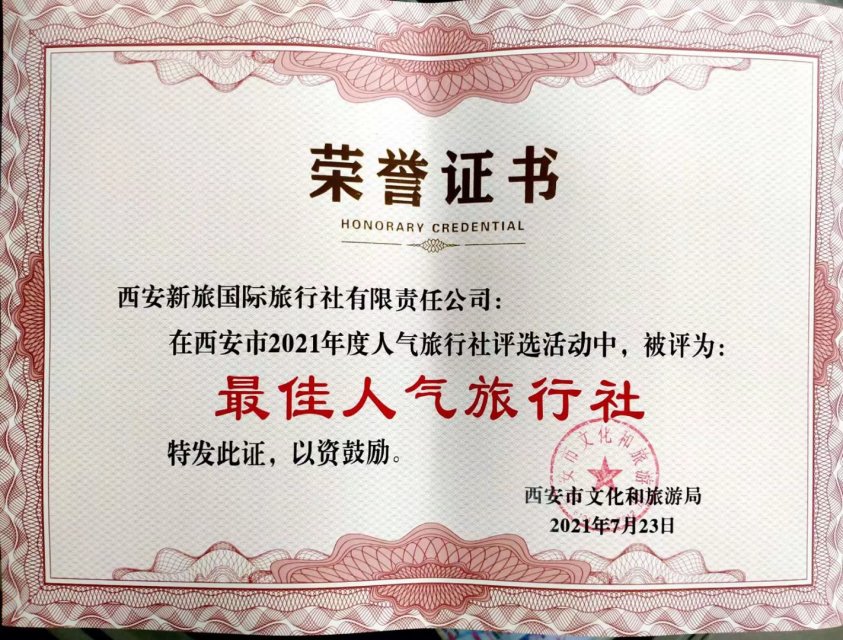 西安新旅國(guó)際旅行社被評(píng)為質(zhì)量誠(chéng)信重點(diǎn)推薦單位
