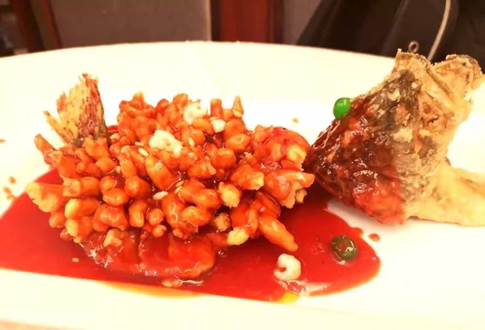 松鼠桂魚,又名松鼠鱖魚,是蘇幫菜中的傳統(tǒng)名菜。這道菜成菜后,形如松鼠、外脆里嫩、色澤橘黃,酸甜適口,并有松紅香味。