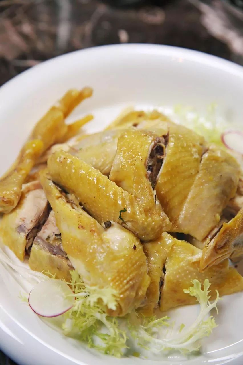 白斬河田雞是福建省的客家名菜,屬于汀州客家菜系。雞必須是長(zhǎng)汀特產(chǎn)的河田雞,料酒必須是長(zhǎng)汀產(chǎn)的客家米酒料酒才會(huì)使這道菜吃起來(lái)香嫩不膩,香味撲鼻,金黃油亮,十分誘人。原計(jì)原昧,鮮香脆爽,滑嫩不膩 白斬河田雞的制作工藝如下:河田雞1只(以足年跨年的公雞為佳,當(dāng)年生未下蛋的雞媛為次,重約1.25公斤,公雞重約1.5公斤至1.75公斤),蔥、 姜(紫姜為佳)各25克,香油、精鹽適量。