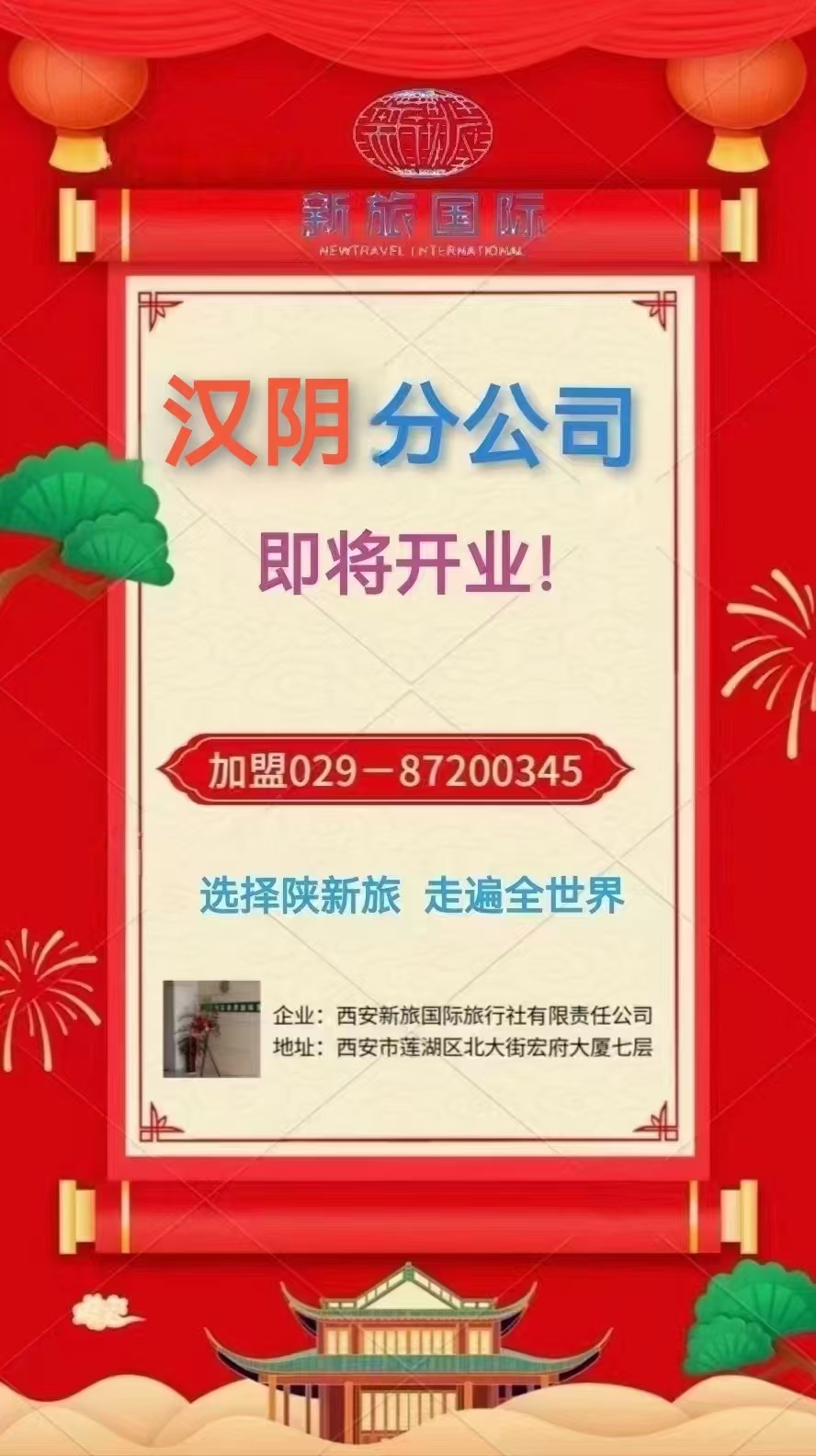 西安新旅國際旅行社有限責(zé)任公司漢陰分公司 即將開業(yè)